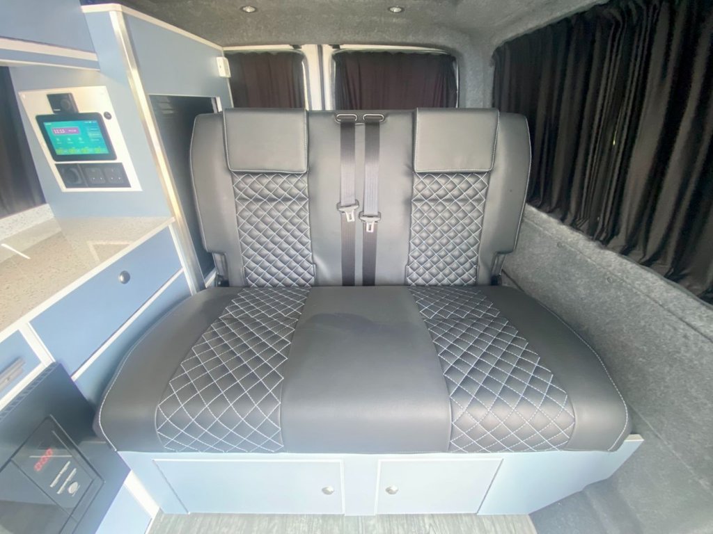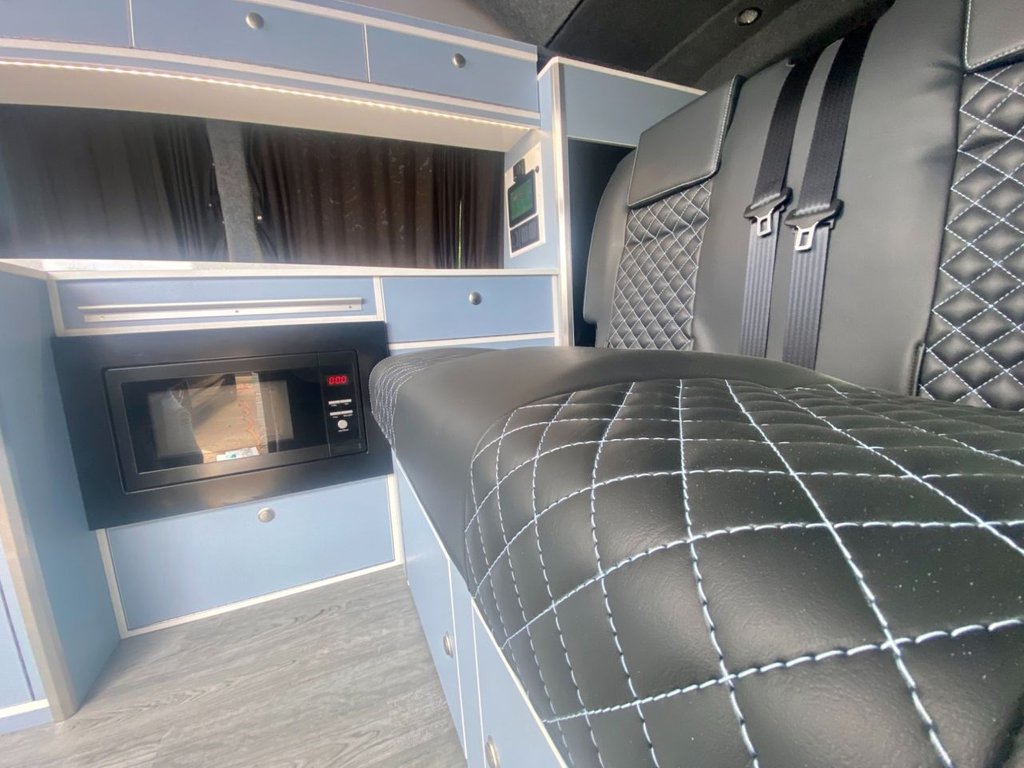 This brand new LWB 6sp Manual 150ps has been painted Candy White over Denim Blue and converted to the highest standards with our fully equipped Escape Breeze+ conversion. Ready to drive away today.